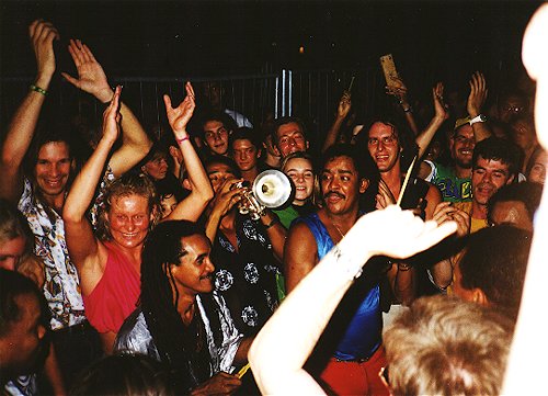 Tchan desce para o meio do povo levando seus instrumentos de batuque.