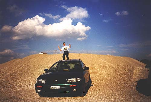 No caminho pra Freising, Ernesto encontra tempo para dar uma "surfada". Não na Internet, mas sim no carro do Florian.