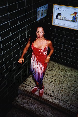 descida, e o detalhe interessante dos tênis vermelhos nos pés da