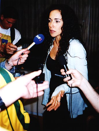 Entrevista com a Daniela Mercury depois do seu show. Na direita,